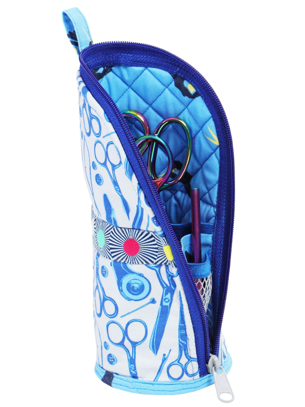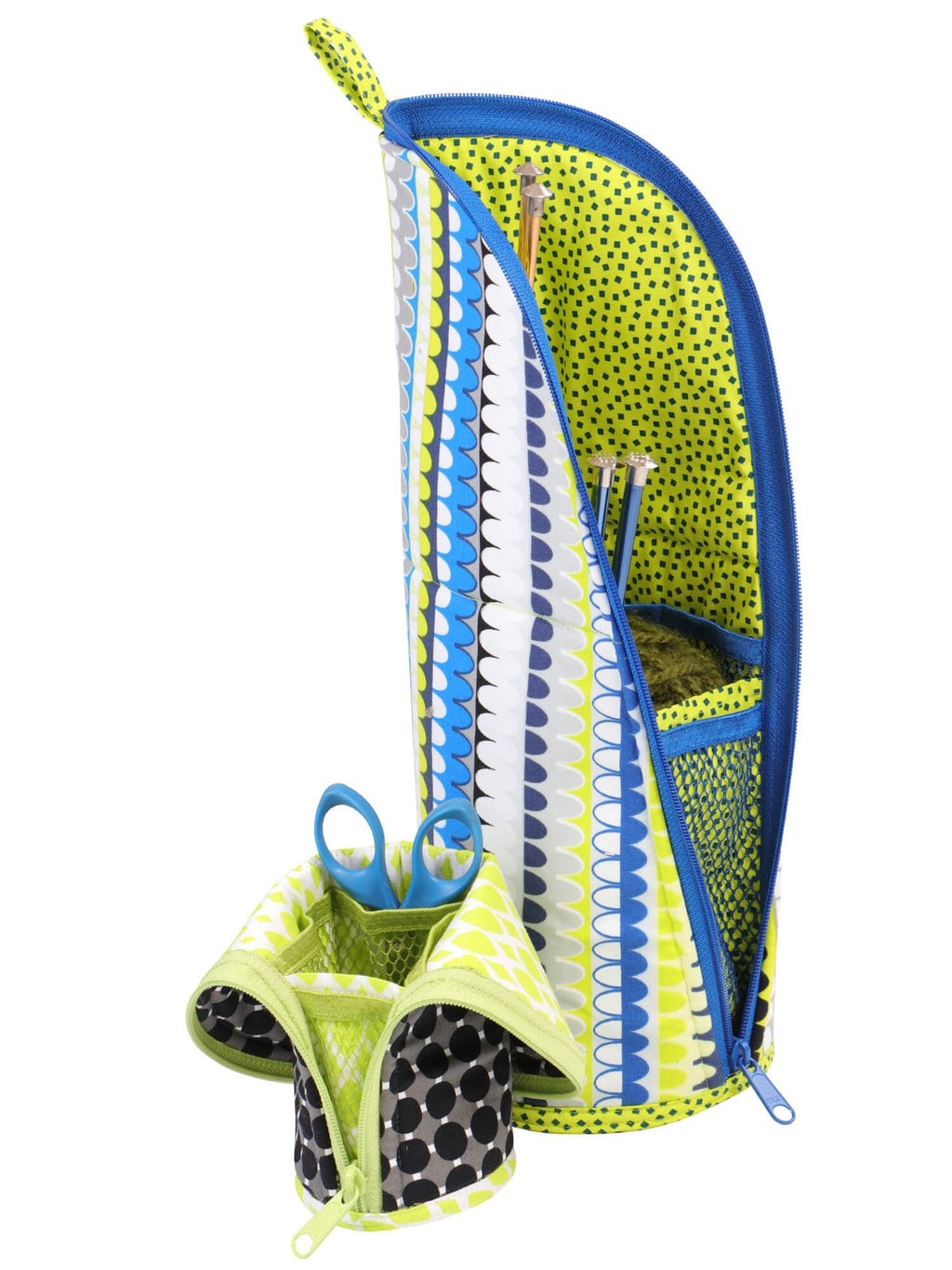 Mesh pockets on the inside help organize supplies.