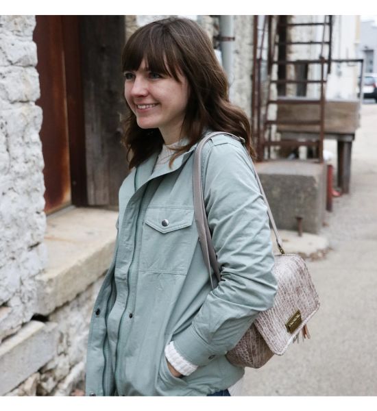 Vintage baguette, modern build. Carrie is a sleek shoulder or crossbody baguette with a flap-lock closure, interior zipper pocket, and an adjustable strap. It’s a fast, clean sew that looks high-end once finished.