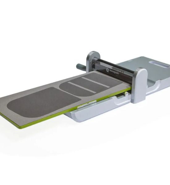 - Load the correct die board (10″ × 24″ or 10″ × 10″).