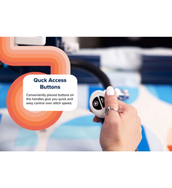 The Grace Q’nique 19X bridges the gap between midarm and longarm. Its 19-inch throat expands your design space, while stitch regulation in Cruise/Precise modes keeps your stitch length even as you glide across the frame. With intuitive controls on a 2.4-inch touchscreen and Edge Warning™ to protect your design area, the 19X brings professional power in an approachable size.