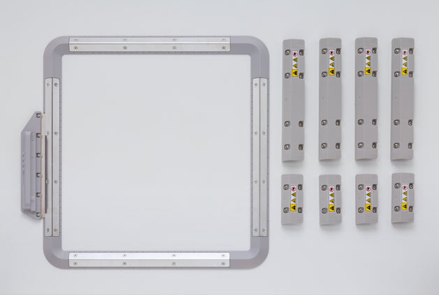 Quilting, couching, and embroidery have never been so fun with the new 10” x 10” magnetic frame. This frame can hold thick fabrics and magnets slide into place, securing your material without residual hoop marks. Hoop in a jiffy with four magnets that quickly fit snug into place. You can also rehoop without removing it from the machine, making changes to any project much quicker! These frames are versatile and excellent for more oversized garments or items with plenty of room towards the back of the hoop.