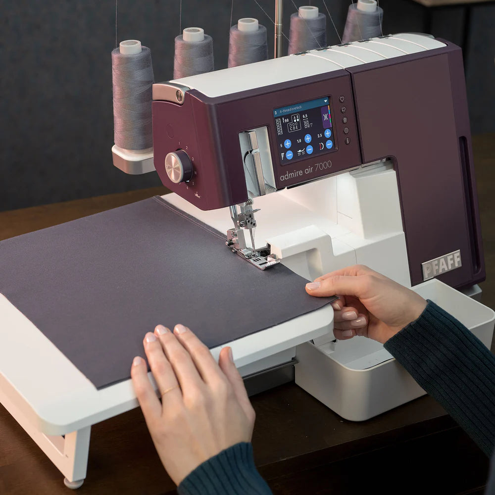 The PFAFF® admire™ air 7000 one-touch air-threading Coverlock "Coverstitch" Machine has great ease-of-use features and provides beautiful results.
