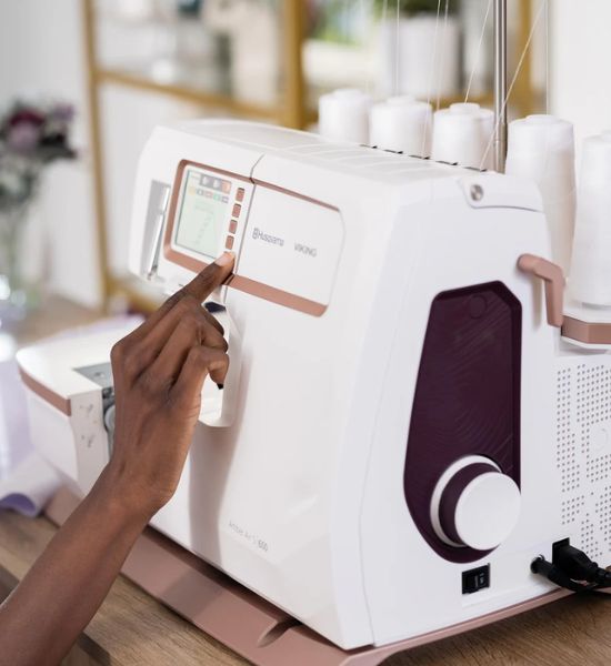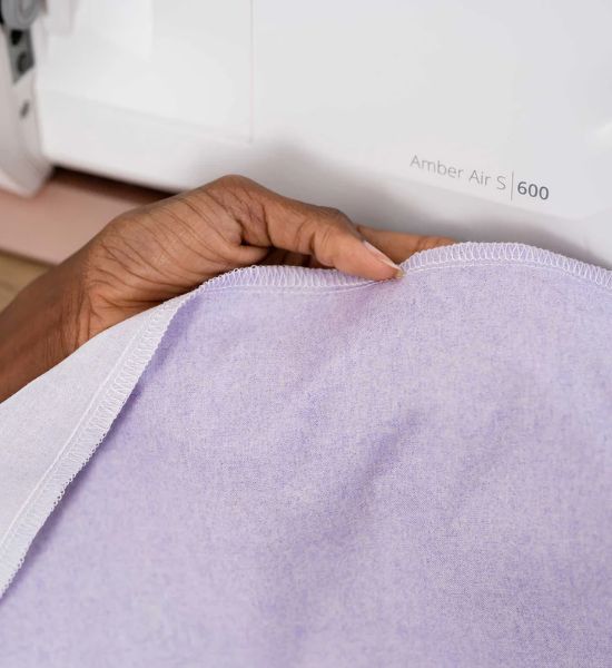 The AMBER™ Air S|600 Coverlock machine offers top-of-the-line features that deliver professional finishes and effortless threading. With one-touch electronic air-threading loopers, a color touchscreen, and automatic settings with the Exclusive SEWING ADVISOR™, this machine gives you speed, precision, and total control for all your hemming, serging, and coverstitch projects.