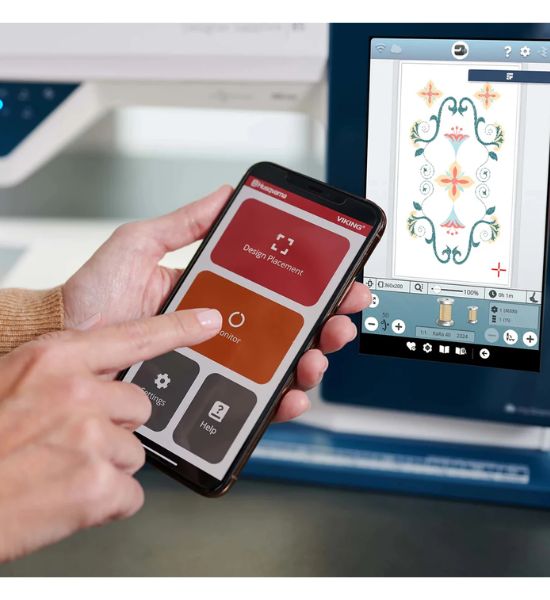 - Support for a wide range of embroidery file formats with wireless and USB stick design import.